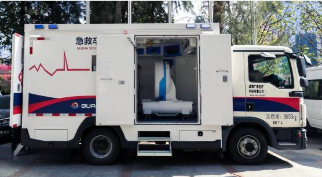 5G移动卒中单元是将移动CT和相关的检验仪器配备在救护车上,在5G网络下,形成集神经症状学检查、CT诊断和静脉溶栓治疗为一体的救治单元。
